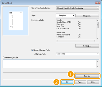 Pode anexar uma folha de rosto ao documento que pretende enviar. Selecione uma folha de rosto de entre três folhas de rosto predefinidas incluídas no controlador de fax ou crie folhas de rosto personalizadas. Para obter mais informações, clique em [Help] (Ajuda) no ecrã do controlador de fax.