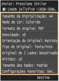 Se selecionar JPEG em <Formato de Arquivo>, só é possível digitalizar uma página quando o documento é colocado no vidro de exposição. Para digitalizar vários documentos de uma só vez, coloque os documentos no alimentador. Esses documentos são digitalizados e guardados como ficheiros separados. No caso de ficheiros PDF ou TIFF, é possível digitalizar vários documentos e guardá-los como um conjunto de ficheiros, independentemente de os documentos serem colocados no vidro de exposição ou no alimentador.