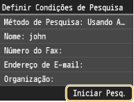 Nomes de pessoas, números de fax, endereços de correio eletrónico, nomes de organizações e nomes de departamentos são os critérios disponíveis para procurar destinos. É possível especificar vários critérios de procura simultaneamente.