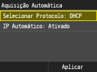 defina <Selecionar Protocolo> e <IP Automático> como <Desativado>. |