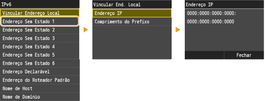 <Informações de Rede> <IPv6>  Tocar na definição que pretende ver