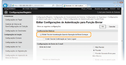 Selecione esta opção quando a autenticação for feita com o nome de utilizador definido no servidor LDAP. Para ver um ecrã de autenticação, selecione a caixa de verificação de [Exibir Tela de Autenticação].