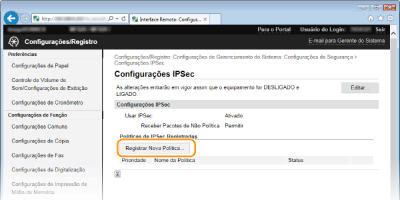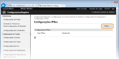 Pode ativar ou desativar a comunicação através de IPSec a partir de <Menu>. Usar IPSec