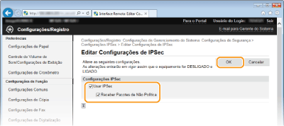 Selecione a caixa de verificação [Usar IPSec] e clique em [OK].