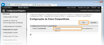 Introduza até 24 carateres alfanuméricos para a chave pré-partilhada e clique em [OK].