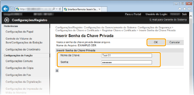 Introduza o nome do par de chaves e a palavra-passe, e clique em [OK].