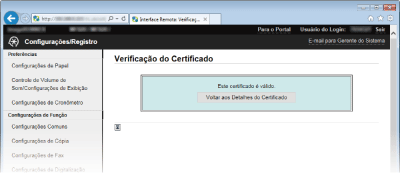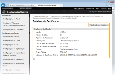 Clique em [Verificação do Certificado].
