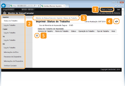Apresenta o estado dos documentos de impressão atuais e o histórico de impressão, cópia, envio e documentos recebidos. Também pode verificar o estado da máquina.