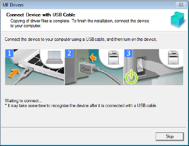 Connect the USB cable according to the instructions in the screen. If you connected the USB cable and installed, disconnect the USB cable and reinstall. Also, the USB cable is not supplied with this product. Prepare it separately.