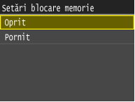 Pentru a imprima documentele primite în memorie, setaţi <Setări blocare memorie> la <Oprit>. Sunt imprimate toate documentele din memorie.