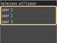 Dacă se afişează ecranul <Selectare utilizator>