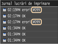 Dacă nu reuşiţi să imprimaţi sau nu puteţi trimite sau primi faxuri sau un document scanat sau apare altă eroare, aceea eroare apare pe un raport sau ca mesaj pe ecranul <Monitor de stare> ca număr din trei cifre (cod de eroare). Verificaţi următoarele pentru a descoperi cauze şi soluţii pentru fiecare cod de eroare. Pentru a afla cum să imprimaţi un raport de eroare şi informaţiile din raport, consultaţi