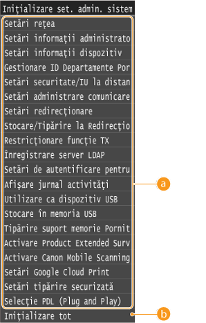 <Setări reţea> <Iniţializare setări reţea> <Da> şi reporniţi aparatul. |