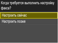 При выборе <Настроить позже> будет установлен режим приема <Авто>. Если позже необходимо настроить параметры факса, откройте экран настройки факса, нажав <Меню>