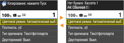 <Часто использ. парамет. копир-я> <Часто использ. параметры факса> <Часто использ. парам. сканир-я>Отображает часто используемые настройки, зарегистрированные для каждой из функций копирования, факса и сканирования. <Копирование ИД-карточки> предварительно зарегистрирован для <Параметры 1>. Добавление часто используемых настроек копирования
