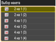 <Копирование>  <N на 1>  <2 на 1> или <4 на 1>  Выберите формат документа на экране <Формат сканирования>  На экране <Формат вывода> выберите источник бумаги, содержащий бумагу, которую вы хотите использовать