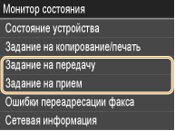 ![]() <Журнал заданий на передачу>/<Журнал заданий на прием>Отображение списка отправленных и принятых документов. При успешной отправке и приеме документа на экран выводится сообщение <OK>, а при сбое отправки или приема документа из-за отмены или ошибки отображается сообщение <Ошибка>.