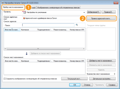 Щелкните вкладку [Выбор места назначения] [Правка адресной книги].