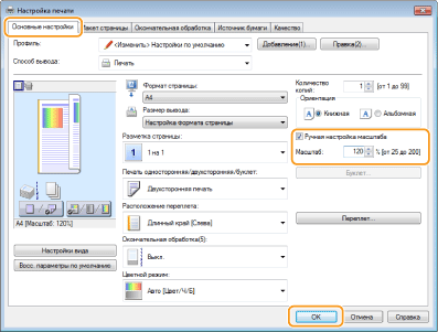 Параметры увеличения/уменьшения в некоторых приложениях приоритетнее, чем те же параметры в драйвере принтера.