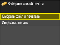 Можно печатать миниатюры файлов изображений (только JPEG), хранящихся на запоминающем устройстве USB. Чтобы напечатать миниатюры изображений, выберите <Индексная печать> на экране и перейдите к следующему шагу.