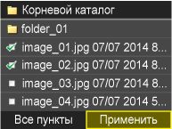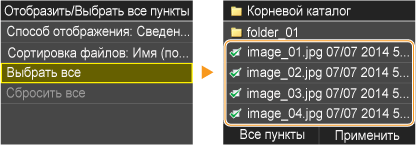 Если вы выбрали файл перед выбором <Все пункты>, можно выбрать только файлы того же формата.