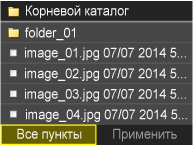 Для перемещения на более низкий уровень папок нажмите папку. Для перемещения на более высокий уровень папок, нажмите