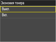 Этот параметр позволяет настраивать функцию Экономия тонера. При включенной функции Экономия тонера аппарат использует меньше тонера для печати документов, что продлевает ресурс тонера.