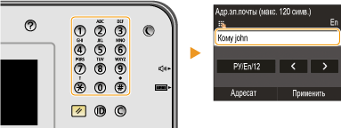 Пользоваться цифровыми клавишами можно лишь при вводе первого адресата. Если необходимо указать дополнительных адресатов, используйте адресную книгу или сервер LDAP. Чтобы указать адресатов в качестве получателей копии или скрытой копии, необходимо воспользоваться адресной книгой.