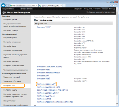 Если в сети есть LDAP-сервер, можно найти на сервере номера факсов и адреса электронной почты, а затем указать их в качестве адресатов или зарегистрировать их в адресной книге. Можно зарегистрировать на компьютере не более пяти серверов LDAP. Зарегистрируйте серверы LDAP посредством Удаленного ИП.