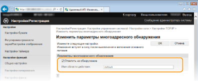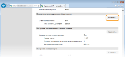 Щелкните [Изменить...] в [Параметры многоадресного обнаружения].