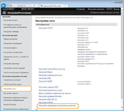 Для связи с программным модулем iW Management Console необходимо активировать выделенный порт и настройки SNMP (SNMPv1 или SNMPv3). Выберите [Чтение/запись] (разрешение на полный доступ) для [Разрешение на доступ к MIB] в настройках SNMP (SNMPv1 или SNMPv3). Настройки выделенного порта Мониторинг и контроль аппарата с помощью SNMP