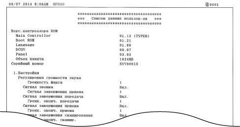 <Список данных пользователя> не включает списки настроек для <Настройки сети> и <Настройки управления системой>. Для проверки всех элементов настроек, включая <Настройки сети> и <Настройки управления системой>, напечатайте <Список данных админ. системы>.