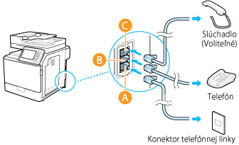 Ak použijete dodaný adaptér, použite kábel telefónnej linky s konektorom so 6 kontaktmi v balení s adaptérom.