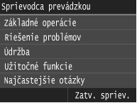 Stlačením zobrazíte pomoc s ovládaním a príčiny/riešenia chýb.
