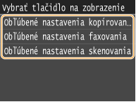 Najprv musíte uložiť často používané nastavenia pre voľbu Kopírovať, Faxovať a Skenovať. ![]() |