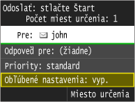 Často používané nastavenia pre voľbu <Skenovať> sa dajú uložiť iba pre e-mail, zdieľané priečinky a súborové servery. Pridávanie tlačidiel z voľby <Nast. dom. obrazovky>