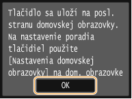 Ak je domovská obrazovka plná a nedajú sa už uložiť žiadne ďalšie nastavenia, vymažte medzery pomocou voľby <Nast. dom. obrazovky> v domovskej obrazovke alebo odstráňte uložené tlačidlá. Odstránenie tlačidiel