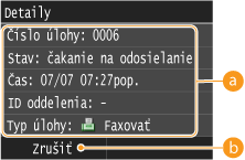 . Odosielanie faxov môžete zrušiť aj po kontrole stavu faxovania.