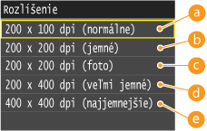Môžete vybrať rozlíšenie vhodné pre váš typ dokumentu. Čím je väčšie rozlíšenie, tým je zreteľnejší obraz, ale o to dlhšie trvá odoslanie.
