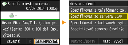 Maximálny počet miest určenia, ktoré môžete špecifikovať pri použití číselných tlačidiel v kombinácii so serverom LDAP, je 10. Ak ste napríklad pomocou číselných tlačidiel špecifikovali sedem miest určenia, pomocou servera LDAP môžete špecifikovať maximálne tri miesta určenia.