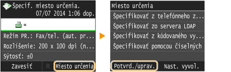 Poklepte na <Miesto určenia>  <Potvrd./uprav.>.