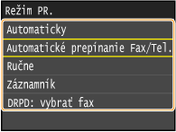 Stroj môžete nastaviť na automatický príjem faxov v rámci špecifikovaného časového rámca, keď zazvoní príchodzí hovor. Prepnúť na automatický PR.
