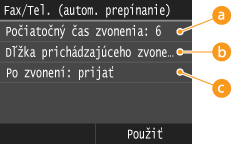Pri výbere voľby <Automatické prepínanie Fax/Tel.>