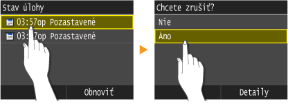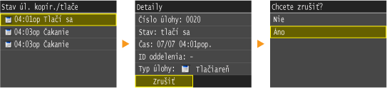 Zrušenie z Remote UI (Vzdialené UR)Tlač môžete zrušiť zo stránky [Job Status] na Remote UI (Vzdialené UR): Kontrola aktuálneho stavu tlačených dokumentov