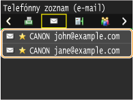 Telefónny zoznam vám umožňuje špecifikovať miesto určenia výberom zo zoznamu uložených miest určenia alebo pre miesta určenia s menami príjemcov vyhľadaním podľa mena. Môžete tiež priamo špecifikovať miesto určenia zadaním trojciferného čísla (čísla kódovanej voľby) priradeného k miestu určenia.