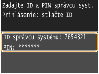 Konfigurácia nastavení cez Remote UI (Vzdialené UR)V rozhraní Remote UI (Vzdialené UR) zadajte v položke [System Manager Mode] ID správcu systému a kód PIN a prihláste sa. Kliknite na položky [Settings/Registration]