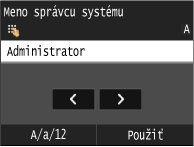Zadajte maximálne 32 znakov pre meno správcu systému a poklepte na položku <Použiť>. Zadávanie textu