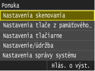 Všetky nastavenia skenovania sú uvedené s krátkymi opismi. Implicitné nastavenia sú označené krížikom (