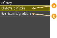 Keď je vybraná voľba <Chybová difúzia> pre voľbu <Poltóny> (Poltóny), <Režim 1>, <Režim 2>, <Režim 3> a <Režim 4> na výtlačky sa aplikuje rovnaký efekt ako pri voľbe <Režim 6>.
