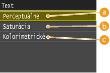 Ak je pre voľbu <Žiadne> alebo <Profil zdroja RGB> vybraná voľba <Profil simulácie CMYK> a stroj prijme definíciu farebných priestorov závislú na zariadení, ktorá bola farebne spracovaná prostredníctvom hostiteľského počítača, nastavenie Metóda porovnávania sa nepoužije.
